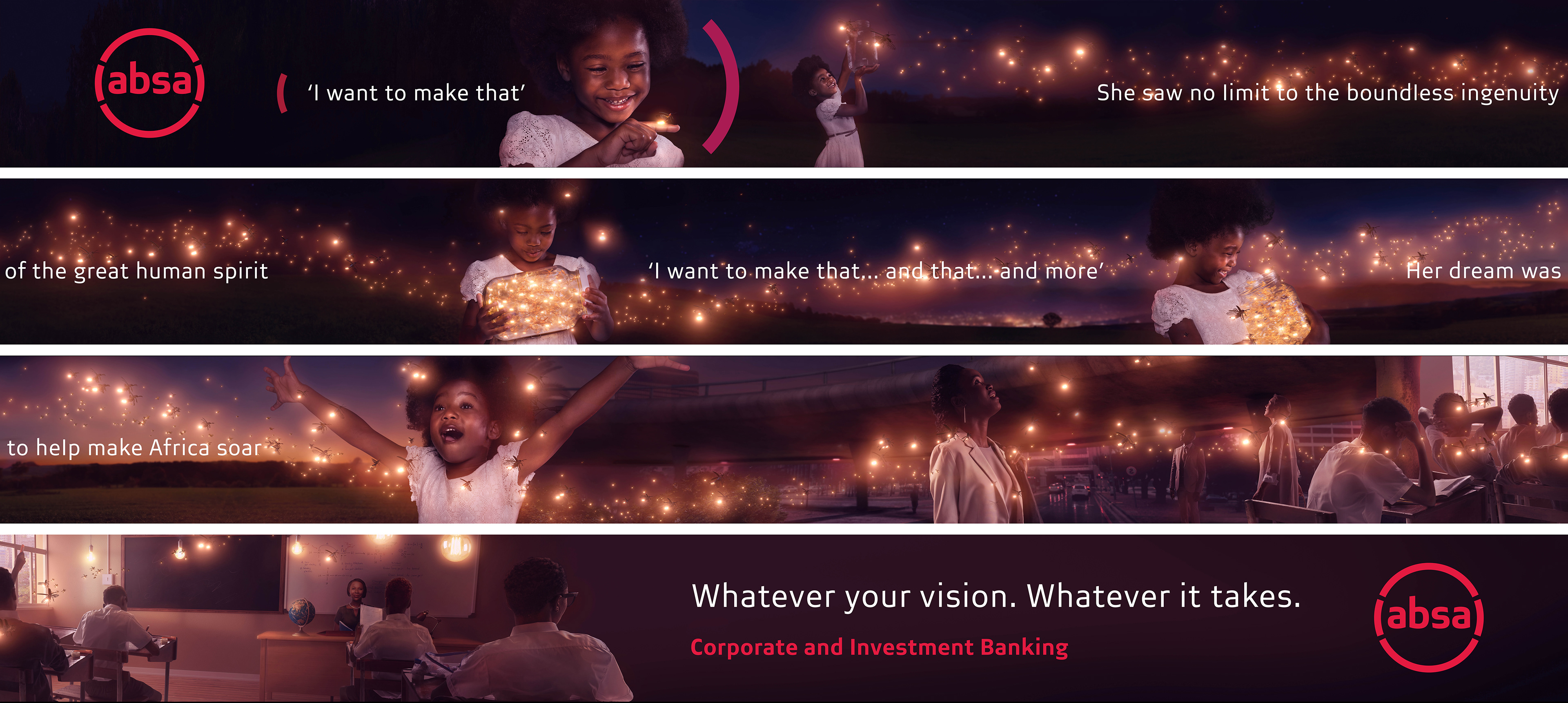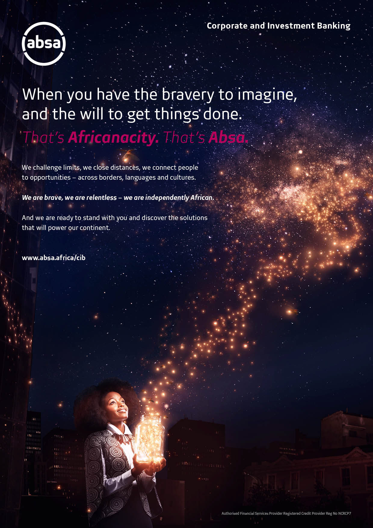 Re-position and re-establish Absa Corporate and Investment Banking (CIB) in the market and entrench Absa’s ‘Africanacity’ positioning in a unique way that it would break the category mould and differentiate Absa CIB from its competitors.