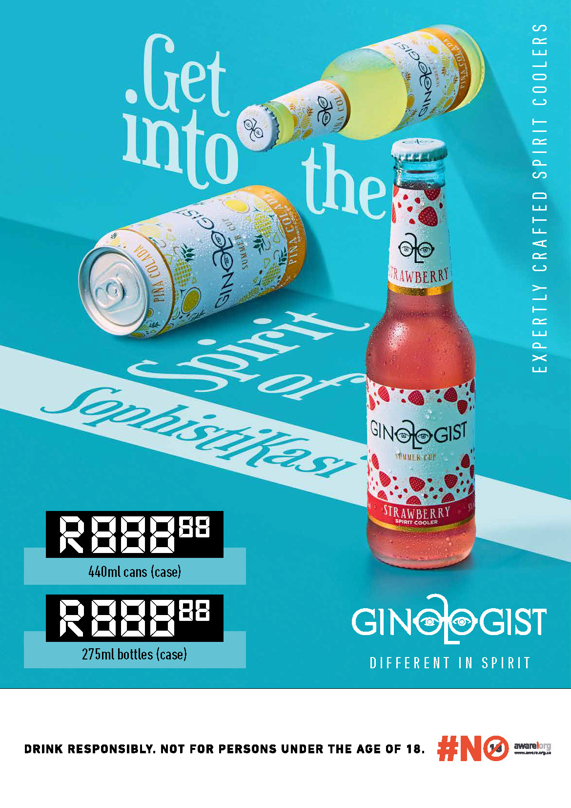 The campaign heroed the pack by using product shots of the different RTD Spirit Coolers to help educate consumers on what variants are available and what they look like so that they could 'Get into the Spirit' by easily identifying them when shopping at their nearest liquor outlet.